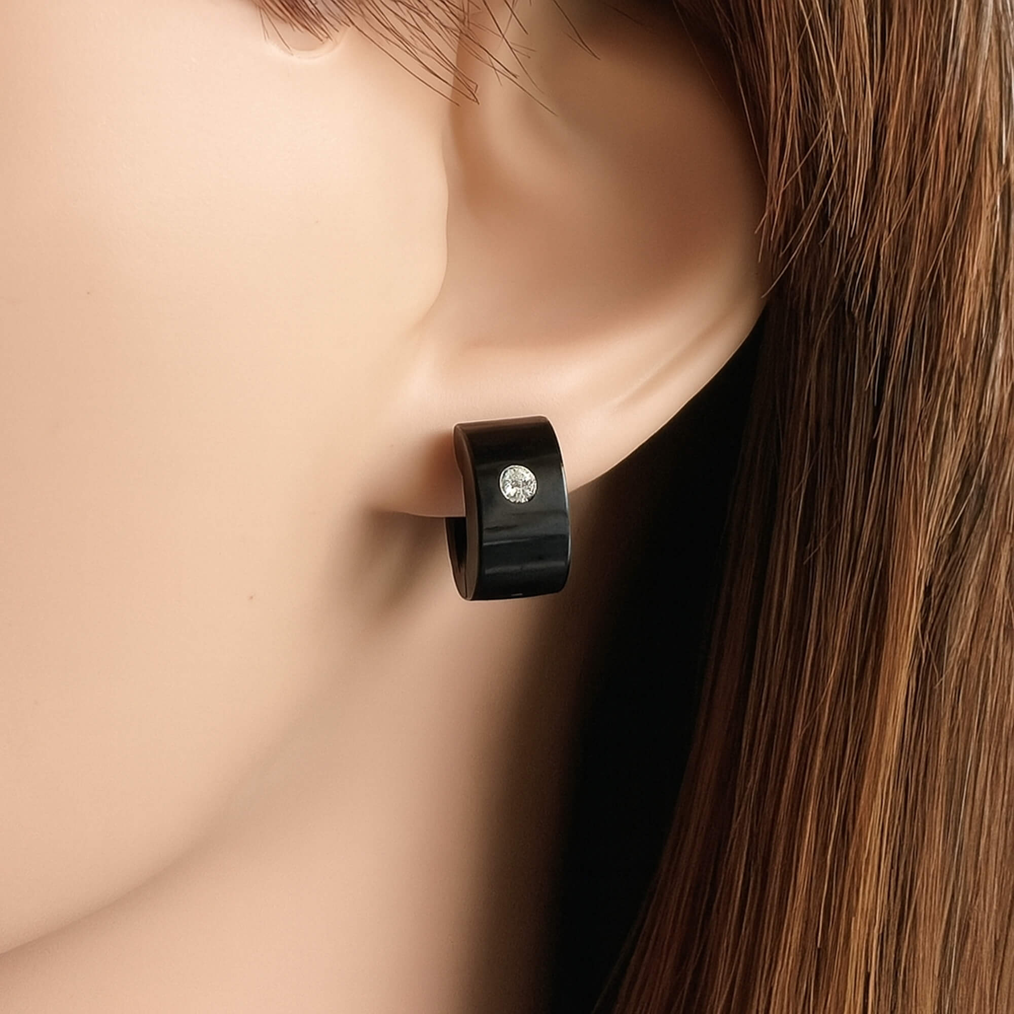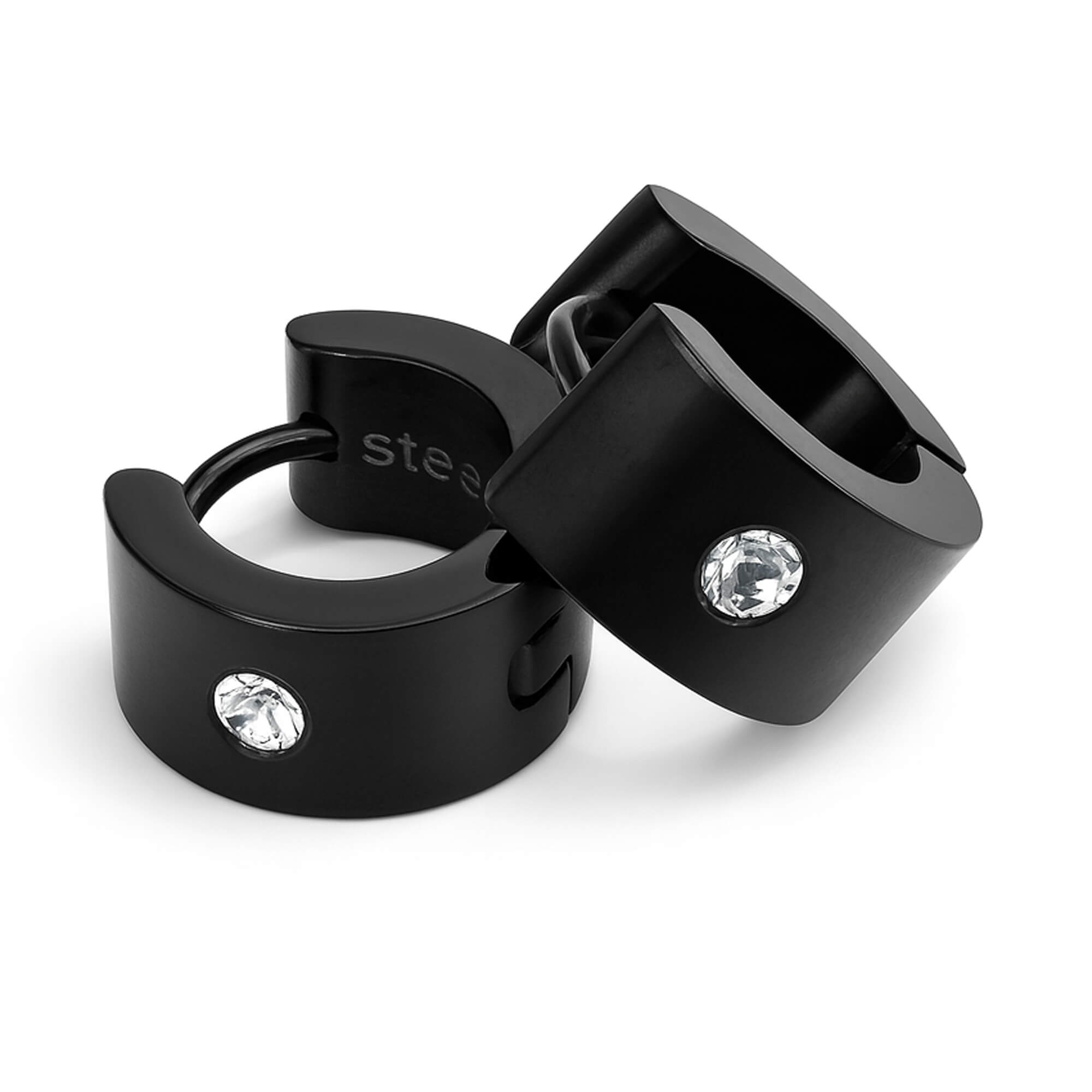 316L Chirurgenstahl Klappcreolen Ohrringe in schwarz 14mm mit Kristall