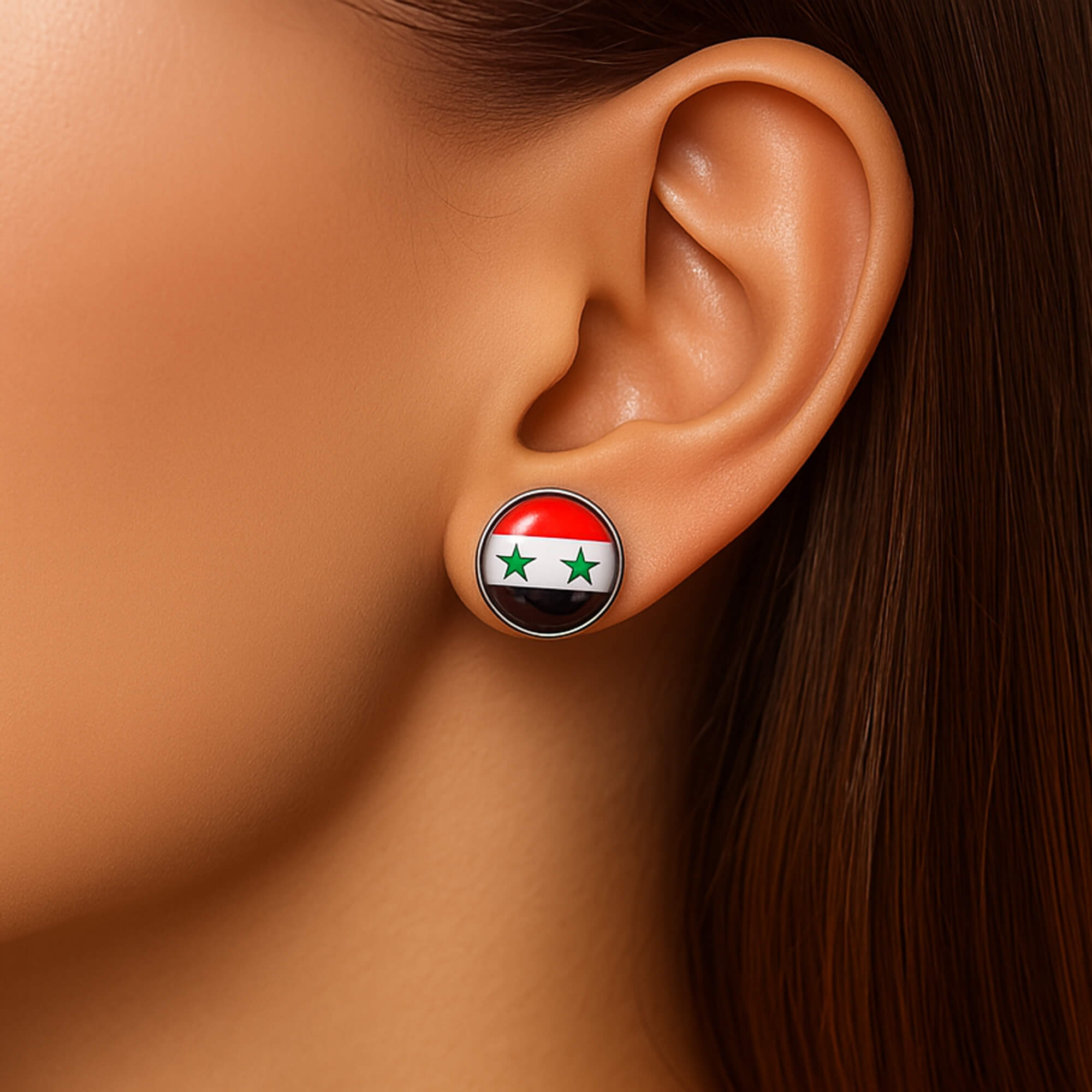 Die Ohrstecker präsentieren die Flagge Syriens in einem ansprechenden und detaillierten Design. Die Farben und Symbole der Flagge sind präzise reproduziert, um die Authentizität zu bewahren. Dies macht sie zu einem perfekten Accessoire für jeden, der stolz seine syrische Identität oder seine Liebe zu diesem faszinierenden Land zeigen möchte.