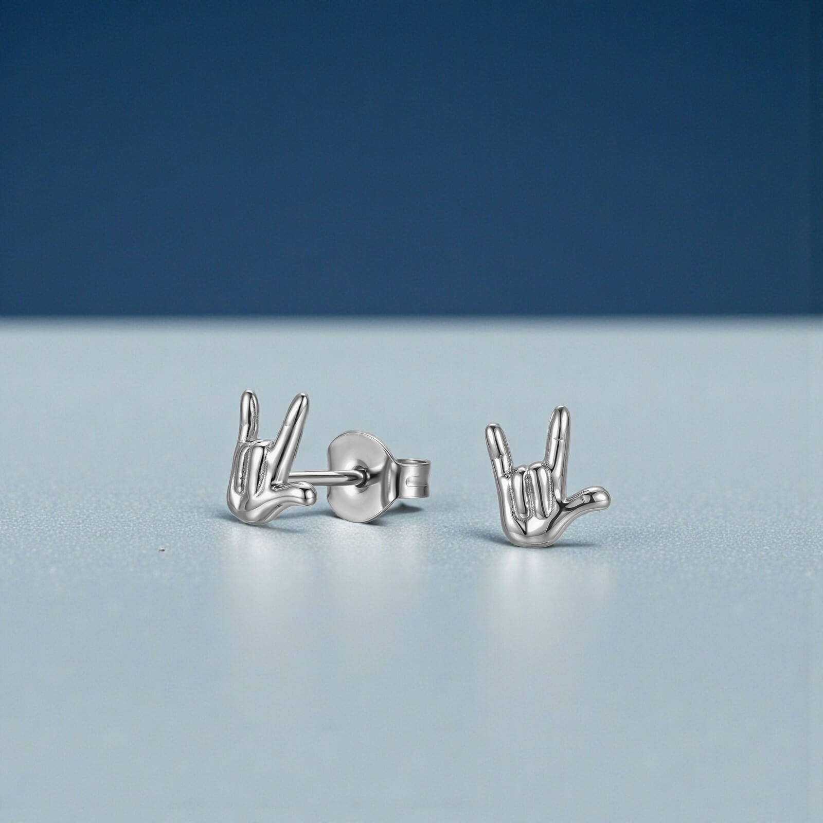 Titan Ohrringe Ohrstecker mit Gebärden-Handzeichen "I Love You"
