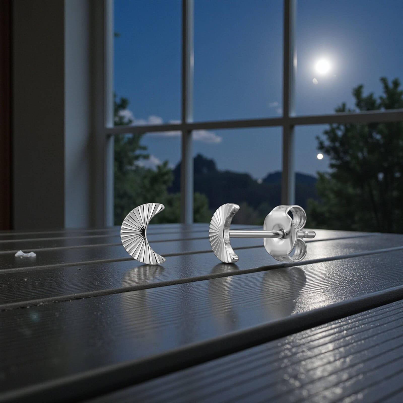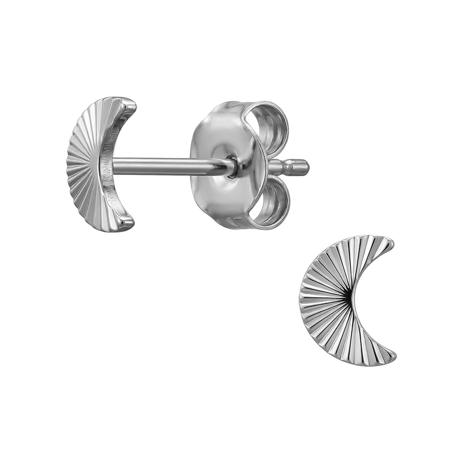 Diese stilvollen Titan Ohrringe Ohrstecker mit zartem Mond-Motiv überzeugen durch ihre besondere Reliefstruktur. Die fein gefächerte Oberfläche reflektiert das Licht elegant und verleiht den Ohrringen eine moderne, hochwertige Ausstrahlung – dezent, aber mit charaktervollem Detail.